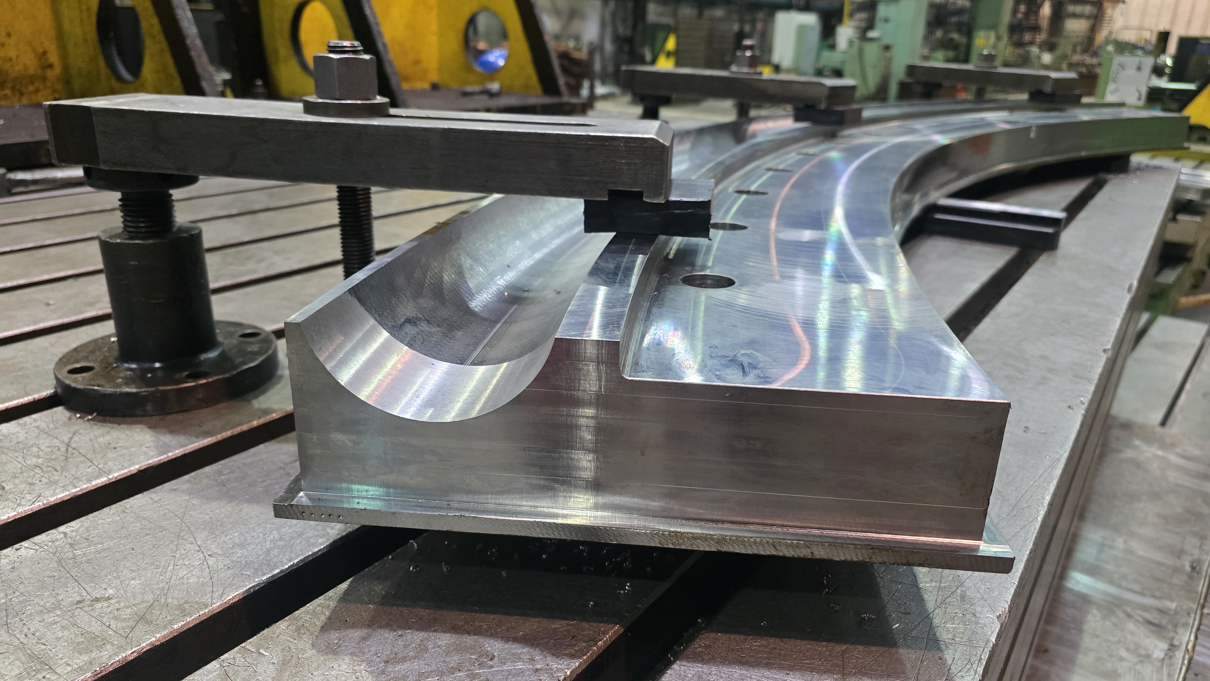Świadczymy usługi szeroko pojętej mechanicznej obróbki skrawaniem w tym obróbki wielkogabarytowej elementów o wymiarach standardowo max. 9 x 3,5 x 1,8 m i ciężarze do 25 ton, z możliwością rozszerzenia zakresu długości elementów do 21,5 m.