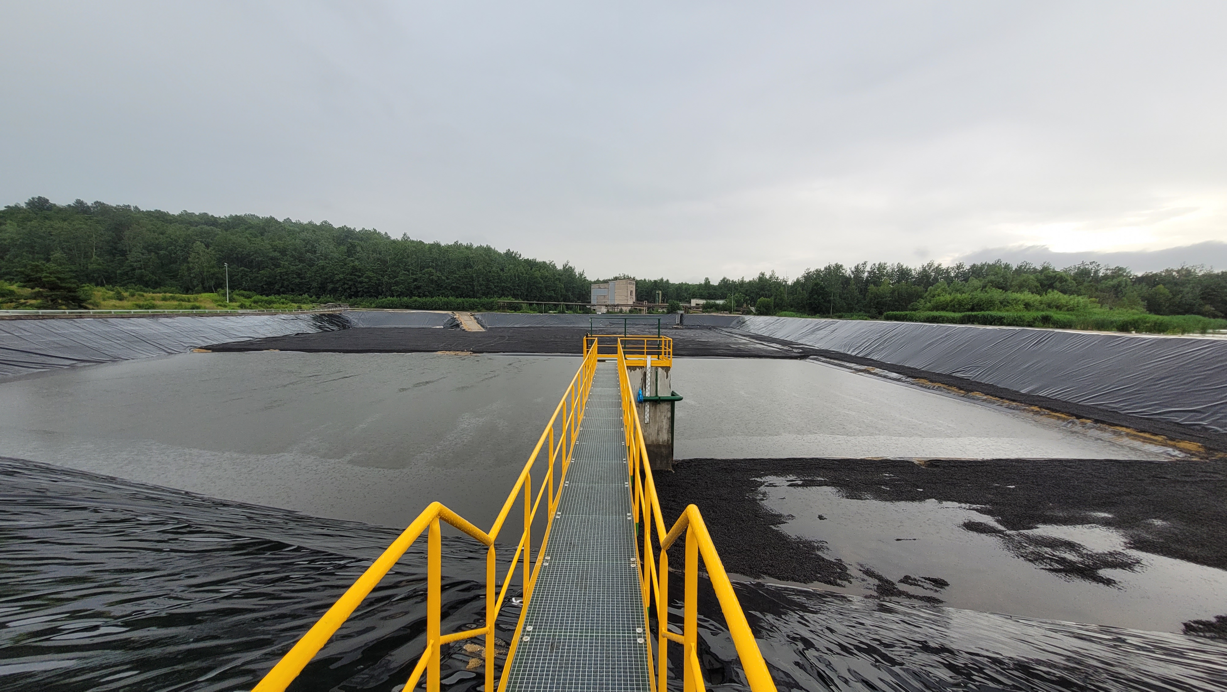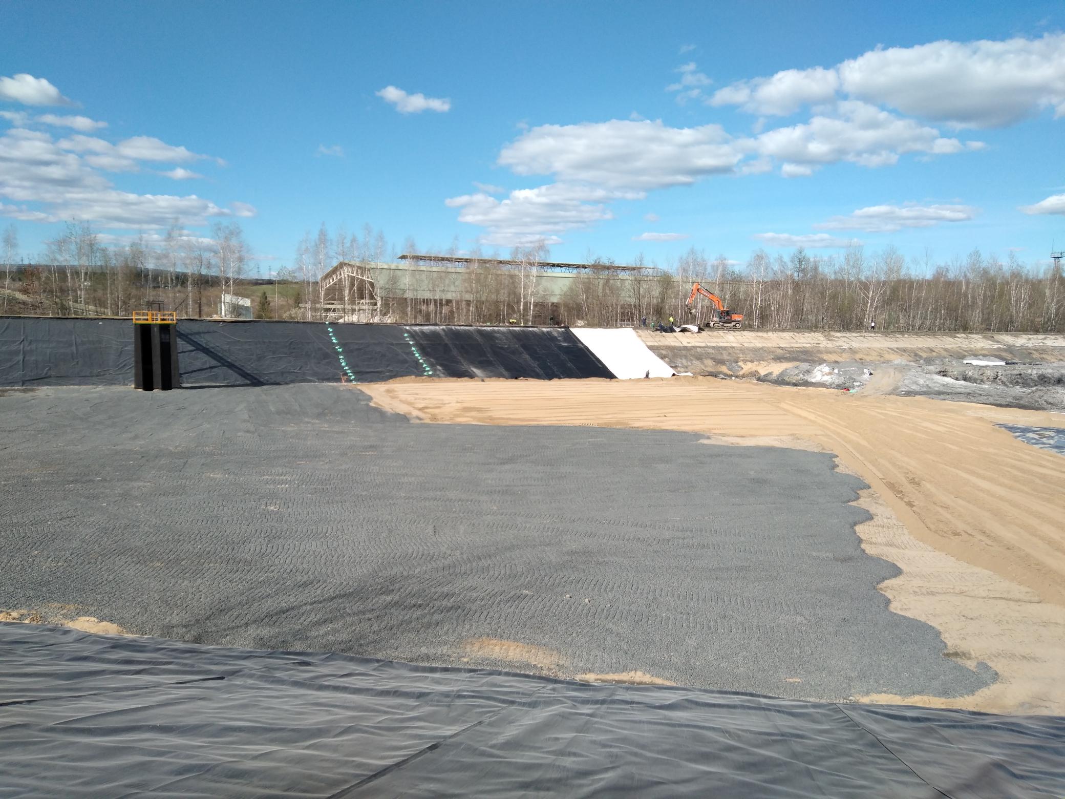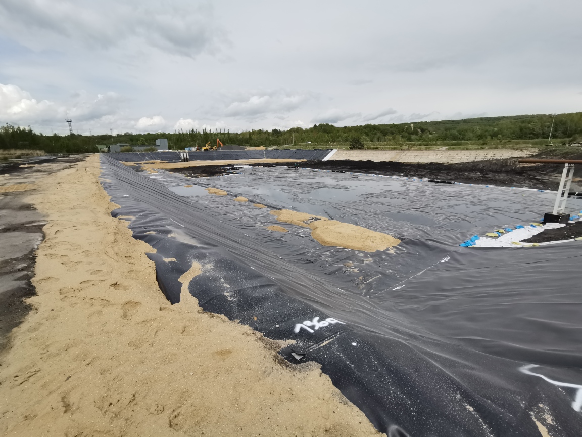 W PGE GiEK S.A. Oddział Elektrownia Turów przeprowadziliśmy mofernizację  dwóch osadników popiołu - OP II i OP I. Zakres prac, prowadzony etapowo od 2021 roku, był szeroki i obejmował m.in. sporządzenie projektu wykonawczego na modernizację osadników wraz z wykonaniem badań geotechnicznych oraz zgłoszeniem robót budowlanych w Starostwie Powiatowym w Zgorzelcu, sporządzenie operatu dendrologicznego na wycinkę drzew w osadniku OP I, wywóz osadu, wyrównanie dna do rzędnych projektowych, naprawę uszkodzonych skarp betonowych, wykonanie uszczelnienia dna i skarp, wyłożenie osadników wraz ze skarpami geomembraną typu HDPE gr. 2mm (łącznie wyłożono ok. 71.000 m2),  wysypanie 30 cm warstwy pospółki oraz 10 cm warstwy kruszywa o wymiarze 16-32 mm, remont kapitalny mnichów odpływowych, wraz z podestami dostępowymi i obarierowaniem.